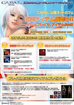 「CABAL公認ネットカフェ限定アイテム販売キャンペーン! In Summer」詳細
