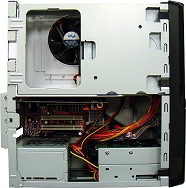 さて,LITTLEGEARは,マイクロATXフォームファクタの範囲でできるだけ小さなケースを使用したPCだ。ある程度の拡張性も残されているものの,ドライブベイには空きがないので,HDDなどは余裕を持った容量を選ぶべきだろう。搭載電源は300Wなので,あまり派手なグラフィックスカードは搭載できそうにない。BTOオプションで用意されているのはGeForce 8600 GTまでで,動作保証もそのクラスまでとなるようだ。 小型PCではなにかと気になる冷却性能だが,側面図を見ると,電源を下に置いて,電源ファンからグラフィックスカード周りの熱を下に吸い出していることが分かる。CPUとHDDは上部でがっちり囲んで冷却しているようである。拡張カードを差すと微妙な感じだが,エアーフローはそれなりに確保されているようだ。 小型のゲームPCがほしいが,キューブPCではもの足りないという人は検討してみるのもよいかもしれない。(aueki)