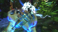 プラズミッドとは,海底都市Raptureの高度に発達した遺伝子工学技術によって作り出された特殊な薬品で,これを摂取することにより一時的にだが超人的なパワーや魔法のような力が得られるもの。 ムービーでは,さまざまな種類のプラズミッドを特殊な注射器のようなもので取り入れた主人公が,敵を一瞬にして凍りつかせたり,手から電撃を発射したりといった特殊攻撃を行っているシーンが見られる。 敵と戦っているさなか,腕にぶすりと注射器を突き刺してプラズミッドを注入し,超人的パワーを発揮しながら敵を倒していく場面のほか,“Gene-Bank”というプラズミッドの自動販売機のような機械で,自分の好みのパワーになるようプラズミッドを配合するシーンなどが収められている。画質も良く,美しいグラフィックスも十分に確認できるムービーになっているので,ぜひチェックしてみよう。(朝倉哲也)