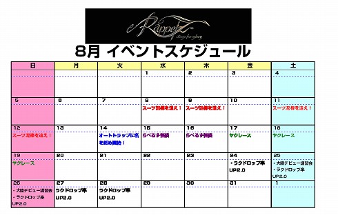 8月に入り、暑い日が続いていますが、RAPPELZでは、そんな暑さを吹き飛ばすべく、沢山の夏休みイベントを開催します!