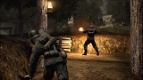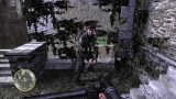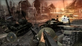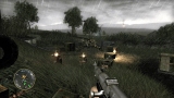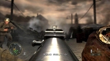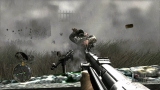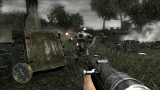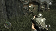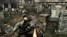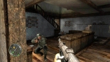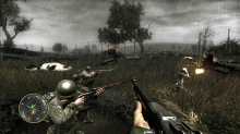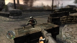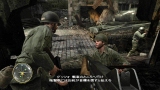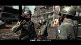 ゲームシステムは,PC版のCall of Duty 2とほぼ同一だ。基本的には「撃って撃って進んで進んで」なのだが,一人で行動することはなく,戦場には常に仲間がいる。戦友に命令を下せはしないが,彼らは自律的にドイツ軍に反応して砲火を開く。敵が迫り,こちらは弾切れ。やられる,と思ったときに仲間の銃弾が敵兵を撃ち倒すといったシーンに多く遭遇するのである。ただし,プレイヤーが何もしないでいると,敵味方がバリバリ撃ち合うだけでゲームはちっとも進展しない。プレイヤーは危険を顧みず,なんとかしてチェックポイントに到達しなければならないのだ。 PC版初代CoDは,スクリプトを多用した演出にその面白さがあった。開発者が想定したストーリーに沿って戦うことで次々にイベントが発生し,それがまるで映画の登場人物になったような気分を与えてくれたわけだ。だが,筆者自身はなんとも思わなかったものの,それに対して「自由度が低い」という意見が多く出たらしく,続くCoD2では広いマップを好きなように攻められるシステムに変更されている。プレイヤーがどう動くのか予測できないためにスクリプトは廃され,プレイヤーの移動につれて周囲に敵が次々に出現するというシステムになったのだ。どんどん現れる敵を全部倒しているわけにはいかないのでランボースタイルのプレイ性も改められ,敵の全滅ではなく,銃火をかいくぐってチェックポイントにたどり着くことが目的に変わったのである……みたいなことは,CoD2のレビューにも書いたような気がしてきたので,ぜひ参照していただきたい。