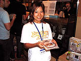 右:「WarCraft III」に優勝したTTaM.TaC選手。若干15歳で,最年少優勝記録まで塗り替えてしまった。岐阜からお母さんと一緒に参加した彼は,優勝賞金4万円をここまでの旅費にあてるそうである。10時間以上プレイする日もあるというWarCraft IIIは,これからもがんばっていきたいとのこと
