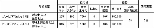 【期間制階級アミュレット】 新たに期間制のアミュレットも戦争担当官から購入可能になります。こちらも期間制で一定の国家貢献度の消費が必要になりますが高い能力を秘めたアイテムになっています。