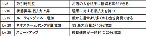 ※ 種族スキルはLv 15 まではヒューマン男性と同じになります。