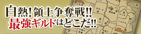 イベント詳細 【イベント内容】 領土戦の宣戦を、自分のギルドより多くの領土を持つギルドに対して行い、領土戦にて、見事領土を奪った場合に、運営チームより賞品をお渡しいたします。 ※領土の数に関しましては、毎週月曜日に更新される“ギルドランキング”をご覧下さい。 ※領土を一つもお持ちでないギルド様の場合、領土を奪った時点で賞品をお渡し致します。 ※領土数が同じギルド同士の領土戦勝者への賞品はございません。 【賞品】 ゲーム内マネー500万Coin