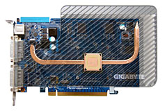 GV-RX26T256Hは、新世代グラフィックチップセットATI Radeon HD 2600XT、DDR3メモリ搭載のスタンダードモデルです。GIGAYBTE独自の冷却技術SilentPipe2を搭載いたしました。大きく黒いヒートシンク、内部には銅製のヒートパイプが通っております。コア上に銅製のヒートパイプを置くことにより左右に熱移動を行い、コアの熱をヒートシンク全体に効率よく拡散し冷却いたします。ファンが付いていないのでノイズを限りなくカットします。