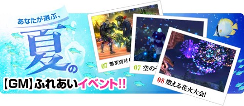 今回、第一弾としまして、【GM】ブログなどでお馴染みとなった【GM】達が用意したイベントの中から、ユーザーの皆様による投票で実際に実施するイベントが決まる夏休み特別イベント企画『あなたが選ぶ、夏の【GM】ふれあいイベント!!』を開催致します。
