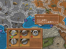 人口ポイントは資源ポイントと同じく,各領域に設定されている人口の値をベースに算出される。自国や友好的な領域からは,その領域に設定されている人口に等しい値が得られる。一方,占領した敵国の領域から人口ポイントは得られない。なお,人口ポイントも次ターンに持ち越し可能だ。