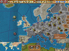勝利条件としての生産ポイントは戦略マップ画面で確認できる。枢軸の勝ち目はかなり薄そうだが,1944年まで日独が初期の領土+αを保有していれば(これ自体非常にキツイことだが),自動的勝利の可能性が出てくる