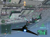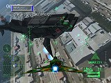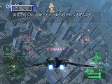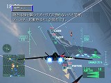 機体と武装を選択したら,いよいよ出撃だ。出撃後はいきなり戦闘空域に到達したところから始まるので,離発着がどうも苦手で……という人も一安心。しかし,本作ではアクション性に重点が置かれているとはいえ,フライトものである以上,画面内に表示される情報密度は高い。速度や高度,機体ダメージや残弾数などなど,把握すべき情報が多いのだ。攻撃目標は,画面に表示される黄色い矢印(エネミーベクタ)や,左下のレーダーマップに示されるので,ゲームに慣れないうちは,とりあえず速度と高度にだけ注意しつつ,そちらを目指して飛べばいいだろう。