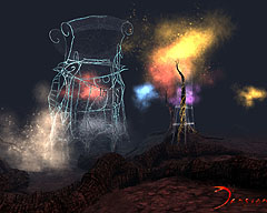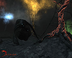 Tensionは,プレイヤーの操る主人公が「無」 (void)に紛れ込んでしまったという設定。ここは,樹木など育ちそうにもない闇や霧に覆われた薄暗い場所で,成仏できずに残った魂がHuntersと呼ばれるモンスターとなって徘徊している。このvoidで生命のエネルギー源となっているのが,リンファ(lympha)と呼ばれる物質で,紫やオレンジなど7色に分かれている。