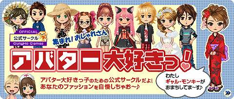 2)ギャル・モンキーのマイルームアバターもってけ!ワッショイ♪ アバター大好きっ!サークルキャンペーン キャンペーン期間中に「アバター大好きっ!」サークルに参加して、「0コインマイルームアバター」を含む、「マイルーム」アバターを持っている方全員にもれなく、マイルーム用「モンキーラグマット」アバターをプレゼント いたします。 ※マイルーム用「モンキーラグマット」は、後日お客様のアイテムボックスに付与されます。