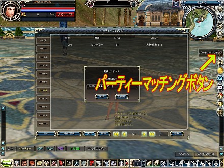 (3)自分のキャラクターのレベル、名前、タイトルが「パーティーマッチング」にのります。