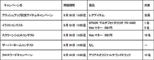 株式会社ハイファイブ・エンターテインメント(本社:東京都千代田区、代表取締役:澤紫臣)は、弊社が現在開発中のMMORPG『アリアス ストーリー』におきまして、本日8月30日18時よりブラッシュアップテスト(オープンβテスト)を開始。また、5大キャンペーンを実施する事をお知らせいたします。