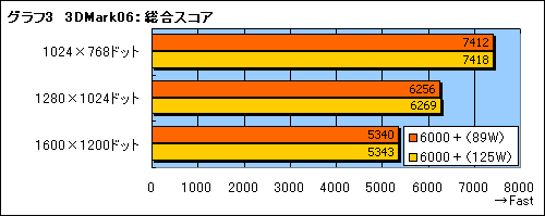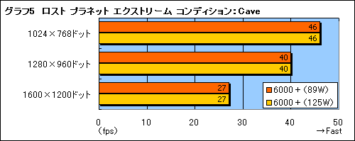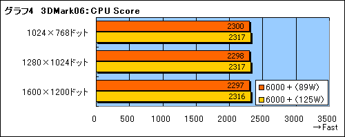 消費電力やCPUコア温度と違い,スペック的には変わらないTDP 89W版とTDP 125W版。パフォーマンスに大きな変化はないと思われたが,果たして3DMark06の総合スコア(Game Tests)とCPUスコア(CPU Score),あるいはロスト プラネットのCaveにおけるフレームレートに差はなかった(グラフ3〜5)。「Core 2と比べてどうか」といったあたりは,TDP 125W版のレビュー記事を参照してもらえればと思う。