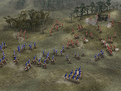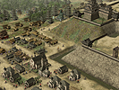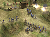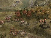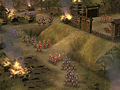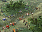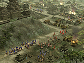 画面右下の,45度傾いた正方形に注目。これが,"安土桃山城周辺の領地"というわけだ。つまりメイン画面で見えているのは,あくまでも一部というわけ。内政しがいがありそうだ。 ところでこの信長,まだ1551年だというのに,「天下人」となっている。まぁあくまで公開用画像だから年代的なことはいいとして,コーエーの発表資料によれば,大名にはいくつかの"クラス"(規模)があるとのこと。大名の規模に応じて,実行可能なコマンドや,開発できる施設が増えていくのだ。 さてゲームの後半になり,各地での弱肉強食的な戦いの結果,いくつかの大名家が滅び,残った大名の規模が大きくなってくると,有力大名家同士の「決戦」が起きる。 この決戦は,配下の城主達を総動員した,文字通りの総力戦となるようだ。"天下分け目の決戦"という感じか。この決戦に勝利した大名家は,当然天下統一に向けて大きく前進することになる。そして敗北した大名家は,滅亡。"決戦"という名にふさわしい戦いである。 ■フル3Dで描かれた戦場を,兵士が駆けめぐる!戦闘画面も公開された。上段の3点が野戦,下段の3点が攻城戦の画面写真となる。パッと見,欧米産のRTSを思わせるグラフィックスだ。軽く数えただけで200体程度のユニットが,バラバラに,しかしながら統制のとれた動きをしている。 RTSライクという意味では,確かに嵐世記に近いといえるだろう。しかし地形が3Dで描かれているためか,天下創世のほうが美しく,かつ,より戦術的な印象を受ける。 また攻城戦の画面写真を見ると,領地が無惨に荒らされている様子が分かる。防御側である場合,プレイヤー自身がある程度設計した町並みが踏みにじられるわけで,精神的なダメージも大きそうだ。いかに領地と領民を守るか? という,大名としての器量が問われる内容となりそうである。