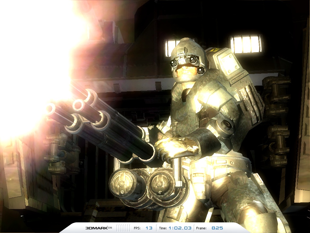 ・GameTest1:Return to Proxycon タイトルから想像がつくように,3DMark03のGameTest2の続編。前回の襲撃からの逆襲劇かと思っていたら,今度は宇宙海賊に襲われているらしい。侵入者の強大な火力は見ものだ。全体的な質感は実写に近いところまできており,床面などのShaderはまったく見事な仕上がりだ。 →GameTest1の部分映像(MPEG1:9.6MB) ・GameTest2:Firefly Forest 点光源とリアルタイムシャドウはほかのテストでも全面的に使われているが,光源処理をとくに強調したのが,このデモだ。光の散乱や複雑な造形で,しかもアニメーションする森の木々といった重い処理が組み込まれている。 →GameTest2の部分映像(MEPG1:6.5MB) ・GameTest3:Canyon Flight ジュール・ヴェルヌ風味の飛行船と謎の巨大生物との邂逅を描いた小編。巨大生物に襲われて,大砲による攻撃も役に立たず,あわやというときに艇長の冷静な判断で,最後の切り札のアフターバーナーを全開にして離脱を試みる。 舞台となる海岸でそびえ立つ岩肌は,全テスト中で最も重いオブジェクトとなっている。全面にShader 2.0で許される最長のコードが実装されていると思っていい。海面もかなりの複雑さで,反射,屈折,影など全6回のレンダリングを経て描画されている。3DMark03でのMother Natureの水から見れば格段の進化だ。また,デモの最後を見ないと分からないのだが,日が落ちてくると空全体に赤みのかかった光になるような処理も実装されている。 →GameTest3の部分映像(MEPG1:5.5MB) なお,フリー版でテストできるのは,GameTest1〜3とCPU Test1,2のみ。ライセンス登録を行ってBusiness版かPro版が必要。 前回の3DMark03で不評だった,Shaderなどテスト項目のOptimal設定もそのままなので(環境によって負荷を自動調整する),フリー版できちんとベンチマークを測定することは不可能だ。測定結果を公開するなどの場合はレジストしてPro版を使用しよう。 残念なのは,デモモードでもレジストしないとフルバージョンを見られないこと。最新のビデオカードを持っている人はぜひレジストして全編を見てほしい(デモはテストより格段に重いので注意)。 (aueki) ※2004年10月2日4:10AM追記:FutureMarkからの依頼により,HotFixと呼ばれるパッチをUpしました(2.8MB) ※2005年1月28日6:30PM追記:ダウンロードファイルを最新版1.2.0に差し替えました。1.2.0パッチプログラムもUpしました。 | |||||||||||