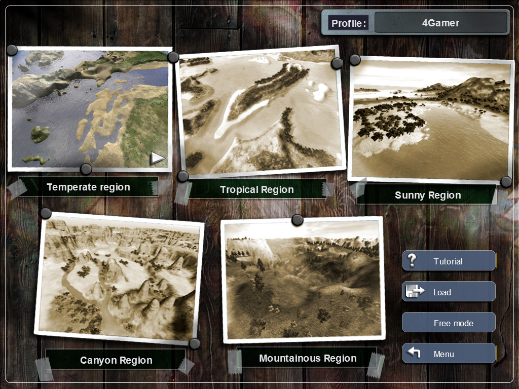 シナリオモードでは,「Temperate Region」の「Rocky Lake」というマップだけがプレイ可能だ。東には大きな湖,西には高い山が連なり,平野は湖畔部分に広がっているだけというマップである。