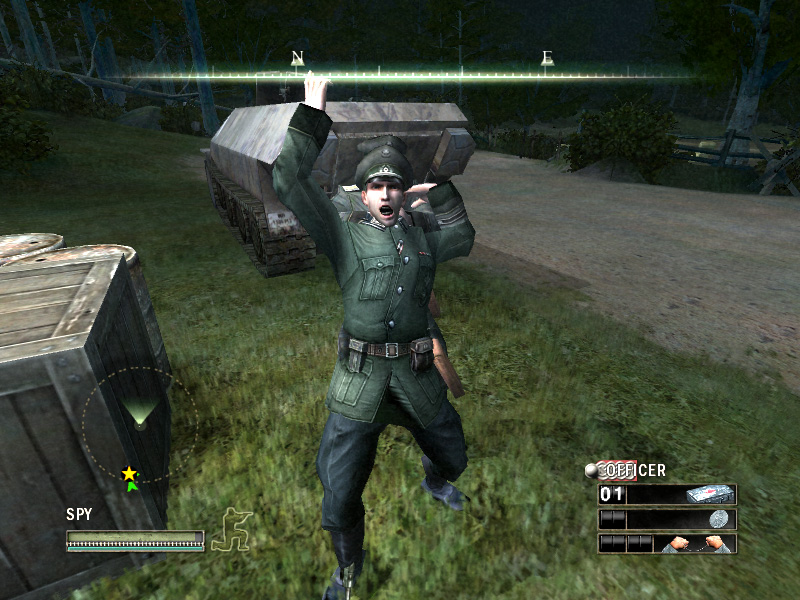 スパイは,敵兵士の後ろに回りこんで,後ろからキュっと首を絞めて絞殺するという方法で,周囲に気づかれずに敵を倒せる。うまく敵を倒せれば,その兵士の服を着てドイツ軍兵士になりすまし敵陣地の中を通り抜けるという,緊張感とスリルをたっぷりと味わえる。途中,毒ガスで敵を殺したり,コインを投げて敵の注意をそらせたりしながら,マップの奥にある小屋までたどり着ければ,ミッションクリアは目前だ。