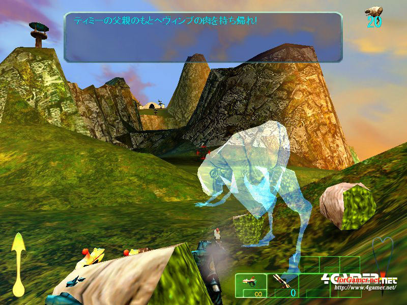 このデモでプレイできるのは,3種類ある種族のウチの"メッカリン"だけで,計5つのステージを縦横無尽に動き回れる。牛肉(?)を20個集めたり,敵対種族の巣を全滅させたりと,独特のノリの一部分が見てとれる。α版のころは「どうしてくれよう」というぐらい重い動作だったが,製品版になるに連れて改善された模様。サンプルの画面写真で見かけるような"美しい高解像度"とはいかないが,PentiumIII/600MHz+GeForce2MXあたりのスペックでも十二分に楽しめる。