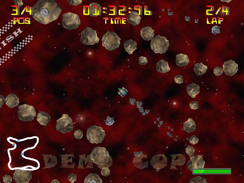 宇宙空間を舞台に繰り広げられるレースゲーム。コース外周はアステロイドで仕切られ,所々にラップポイントが設置されている。"宇宙"ならではの慣性が働くので,操縦はなかなか難しい。最初のうちはトップになるのは至難の技だ。ライバルを防衛するための攻撃およびトラクタービームが用意されているので,これを活用するのがコツ。なお,このソフトはシェアウェアで,正式登録(15ドル)するまでは一つのレーストラックしか選択できず,画面に「DEMO」の文字が張り付く。登録版では9レベルのレーストラックが遊べる。