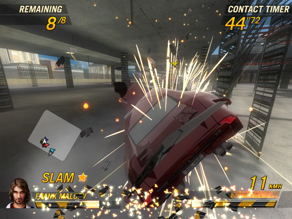 “Skyscraper Derby”は,高層ビルの建築現場で,総勢8台による生き残りをかけたぶっ壊しレースが楽しめる。スタートと同時にライバルカーめがけ突進,ぶつけて破壊していく。最後まで生き残れば勝利となる。