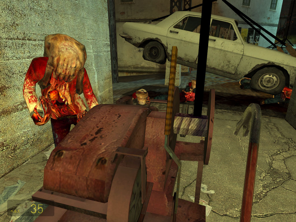 チャプター6はゾンビが徘徊する街中のステージで,ちょっぴりクレイジーな神父のNPCが主人公を誘導してくれる。このステージの最大のポイントは,零点エネルギー銃(グラビティガン)を入手した直後というところ。当然,グラビティガン大活躍のステージ構成で,ドラム缶やら丸ノコやらをガンガン飛ばすという,本作ならではの戦闘をお腹いっぱい楽しめる。
