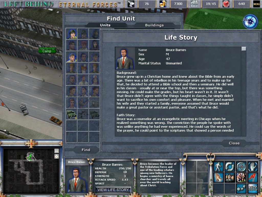 「Left Behind: Eternal Forces」は,世界征服を目論む国連事務総長(!)と,それを阻止せんとするトリビュレーション・フォースとの戦いを描くベストセラー小説が原作のストラテジーゲームだ。開発元のLeft Behind Gamesは,2001年に設立されたデベロッパで,社名からも分かるとおり「Left Behind」を制作することを第一の目的としている。原作は,全米でシリーズ累計6300万部のセールスを誇るアドベンチャー小説で,全体的に非常にアメリカ的というか,キリスト教色が濃い。このあたりのことは,奥谷海人のAccessAccepted第82回「珍しいストラテジーゲーム三連発」に詳しいので,興味のある人は参考にしてほしい。