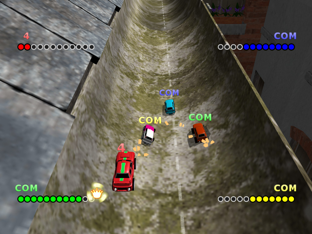 自分の操作している車が他車とまぎれて分かりにくかったり,カメラ視点によってコースの先の様子が分かりにくかったりするなど,多少プレイしづらい場面もあったが,基本的にカーソルキーだけでプレイができる,とてもお手ごろなレースゲームになっている。
