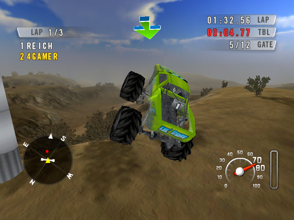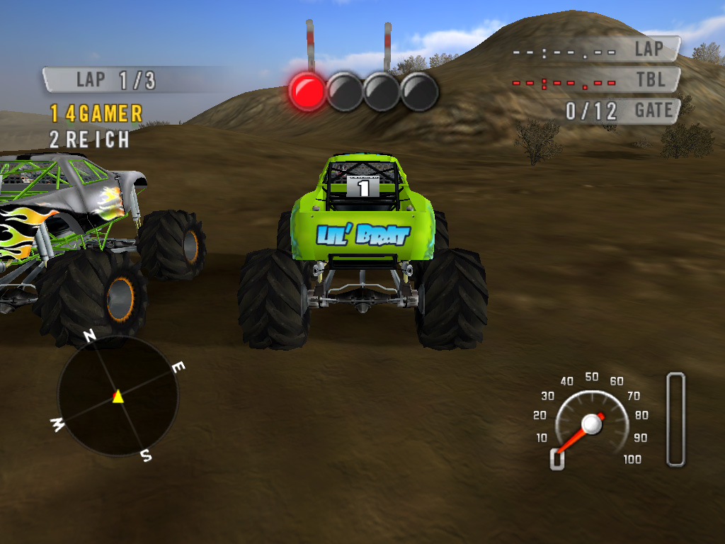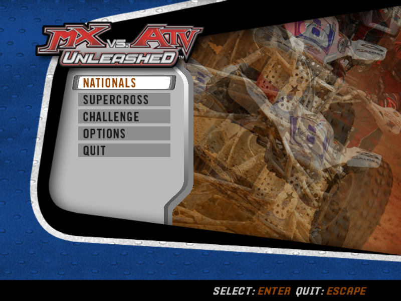 二輪と四輪でのオフロードレースを両方楽しめる,アーケードタイプのレーシングゲーム「MX vs. ATV Unleashed」。モトクロス用のオートバイ,ATVとよばれるコンパクトな四輪バギー,そしてピックアップトラックに人間の背丈ほどもあるような巨大なタイヤを履かせたモンスタートラックの,計3種類が収録されている。
