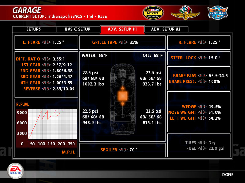 さて本作は,EA開発のNASCARシリーズとしては2作めで,Papyrus開発の「NASCAR Racing 2003 Season」や「NASCAR Racing 2002 Season」よりもアーケード寄りの設計だ。そのため,セッティング項目の多さとは裏腹に,走行フェイズに移るまでのまどろっこしさや高難度によるストレスがなく,シミュレータファンの中には拍子抜けする人もいるかもしれない。