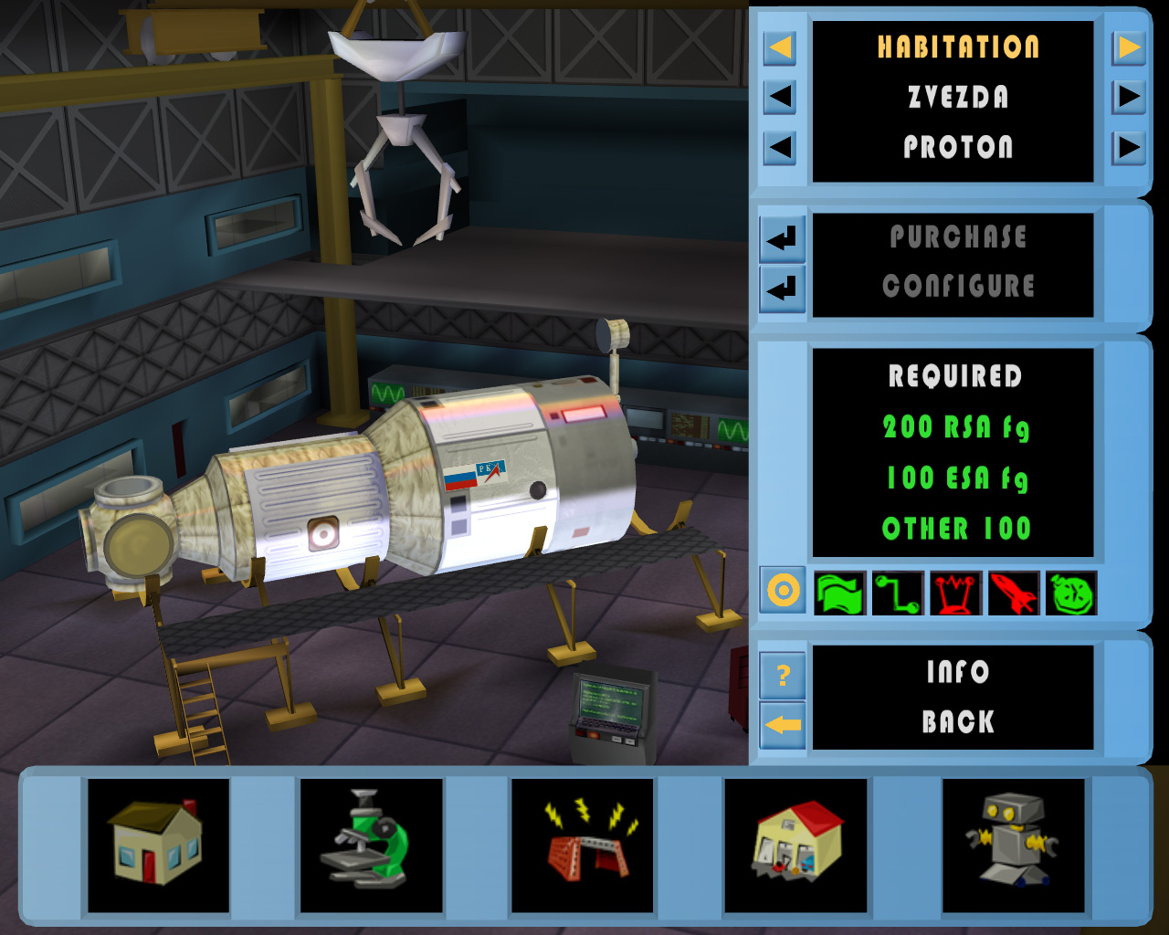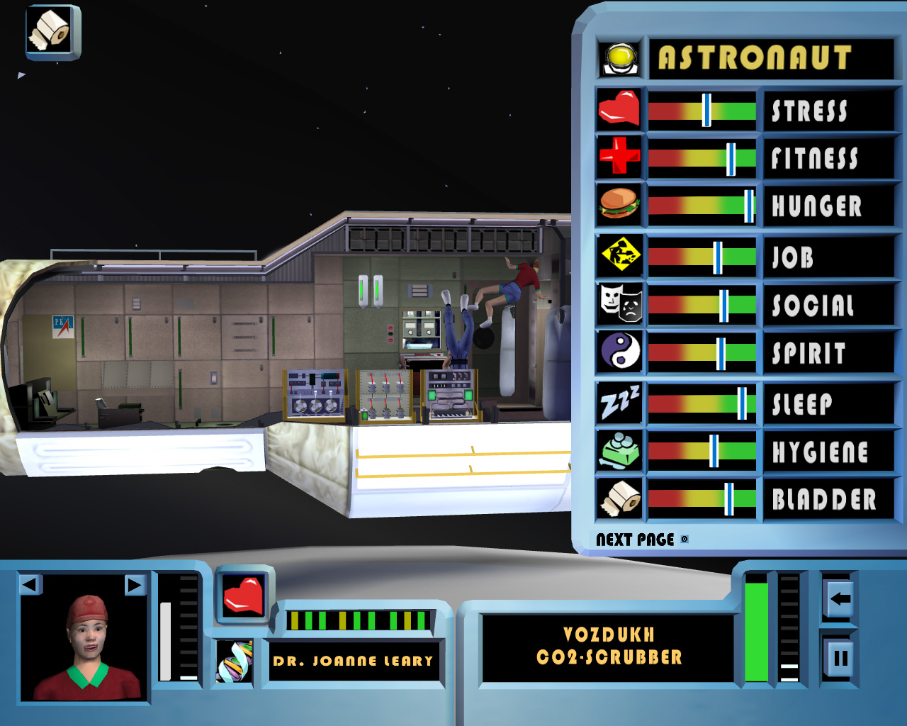 シンプルなグラフィックスと操作性で,ISSでの生活が淡々と過ぎていくだけだが,壁(無重力状態なので,壁も床もないのだが)にくっついたベッドで宇宙飛行士が睡眠をとったり,トイレに入ったりなど,宇宙飛行士達の,非日常のような日常生活を見ることができる。