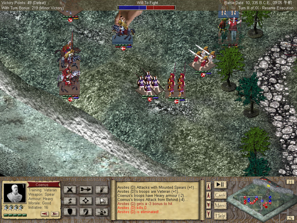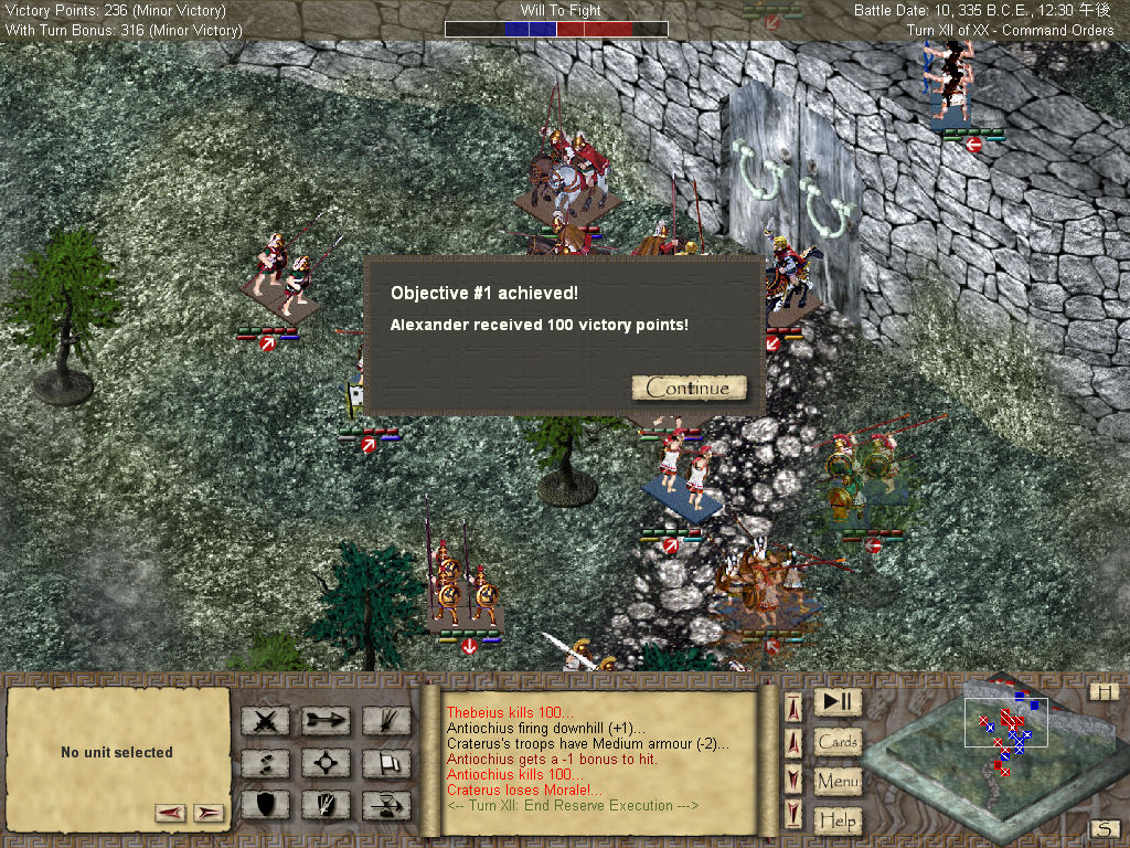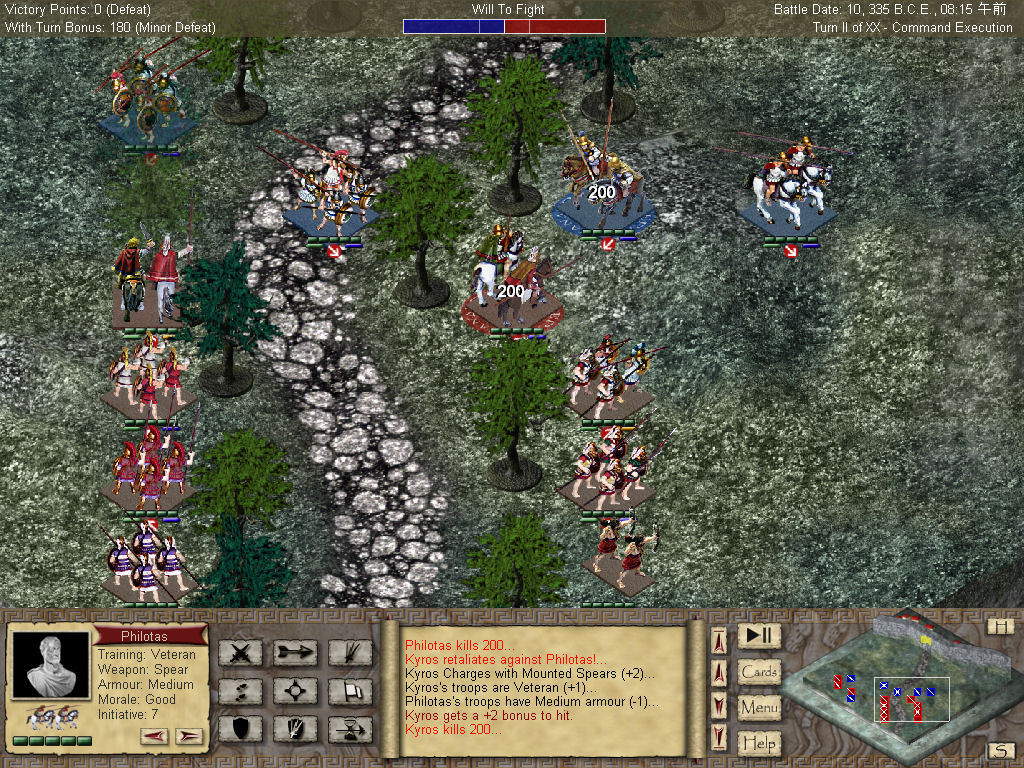 このデモ版では,最初のシナリオ「Thabes - The Accession of Alexander」を遊べるが,このシナリオに関しては,ストラテジー経験者なら比較的楽に勝利を収められる程度の難度。物足りなさを感じる人もいるだろうが,そういった人には,二人によるマルチプレイにも対応した製品版の入手をお勧めしたい。