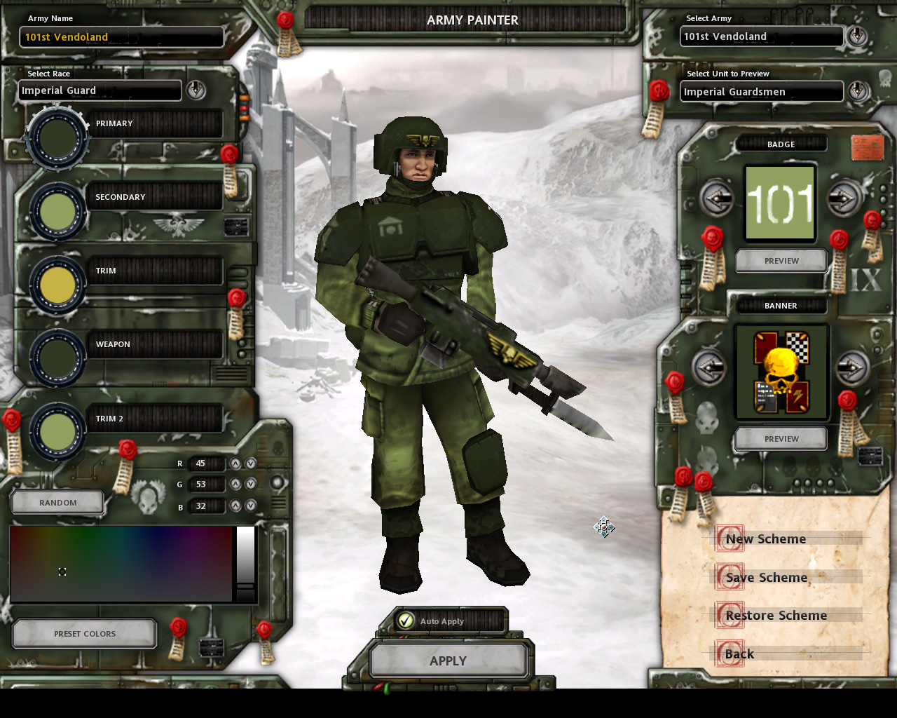 本デモ版には,キャンペーンとスカーミッシュの2モードが収録されており,プレイヤーは,そのどちらにおいてもImperial Guardという種族を率いて戦うこととなる。残念ながらマルチプレイは選択不可能だ。
