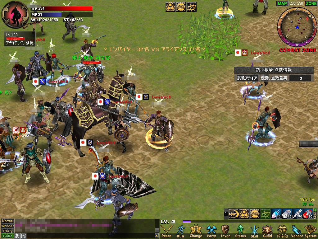 アレスのPvPは,フィールドを歩いているほかのPCに見境なく襲いかかるといったものではなく,相手と正面から競い合う,いわばスポーツ系のPvPだ。「ギルド戦争」と「領土戦争」の2種類がシステムとして用意されており,どちらにも決着をつけるための明確なルールが存在する。また中立地帯でなければ,通常のフィールドでも自由にPvPが可能だ。