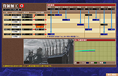 資源を加工して得られた鉄やアルミニウムを使って,航空機や車両,火砲などを生産する。生産量を決めるのはここでも,各地にある航空機工場や兵器工場の能力の合計値である。どの兵器を何台作るかといったプランは,「パターン」として登録しておくことで操作を簡略化できる。