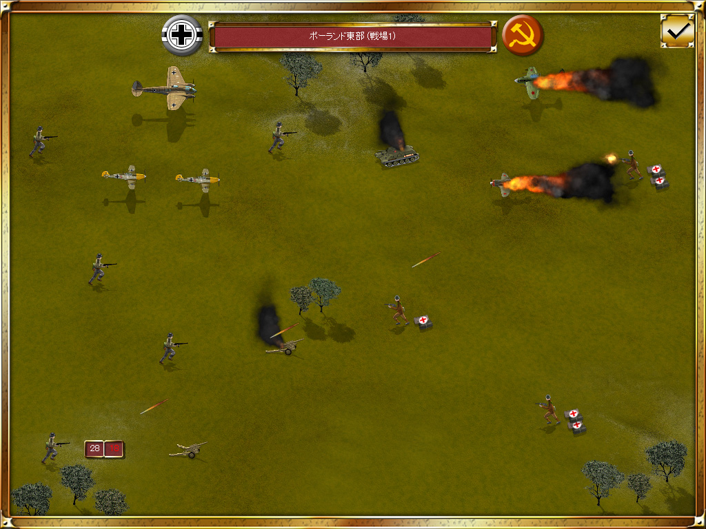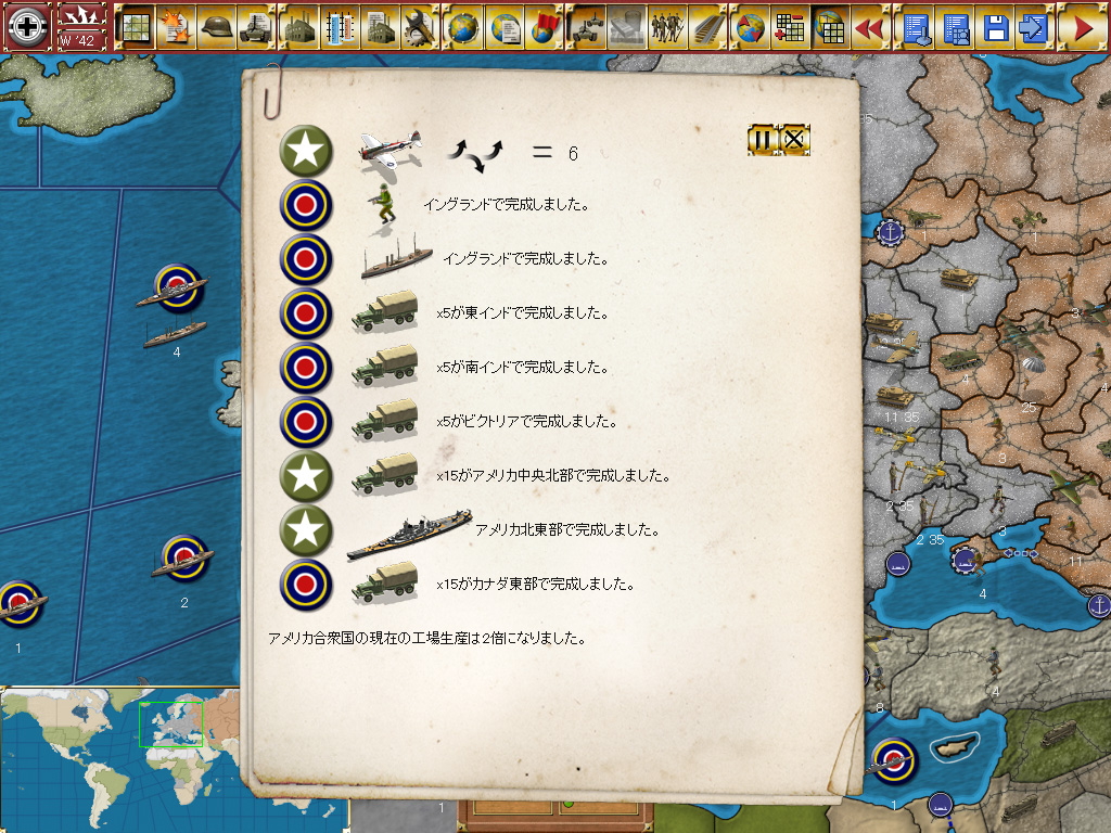 しかし,補給ポイントと軍事ユニットは同じ資源ポイント・工場ポイントを消費して作るので,補給ポイント生産にかまけていると肝心の軍事ユニットが不足してしまう。さらに,歩兵や野砲がせいぜい2ターンで生産できるのに対し,戦車や航空機,戦闘艦はもっと長い期間が必要になる。