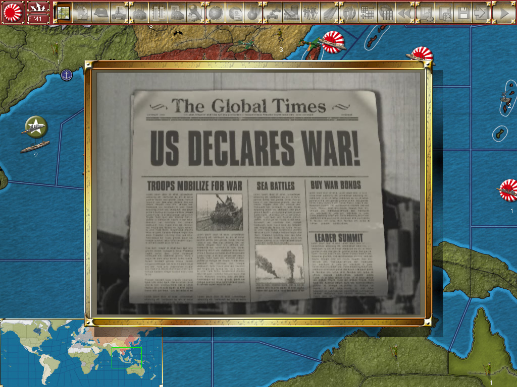 情勢再現のために,本作には特殊ルールが多数用意されている。たとえば日本軍の場合だと,早々に中国内陸部に陸上ユニットを進めてしまうと,中国の生産を活発にしてしまううえ,細々と続いているアメリカからの資源輸入を絶やしてしまう,といった具合だ。ミッドウェー海戦のような,本来偶発性の高いビッグイベントはルール化されていないが,現実の歴史から大きく逸脱しない展開が保たれるよう,個別にルールが用意されている。