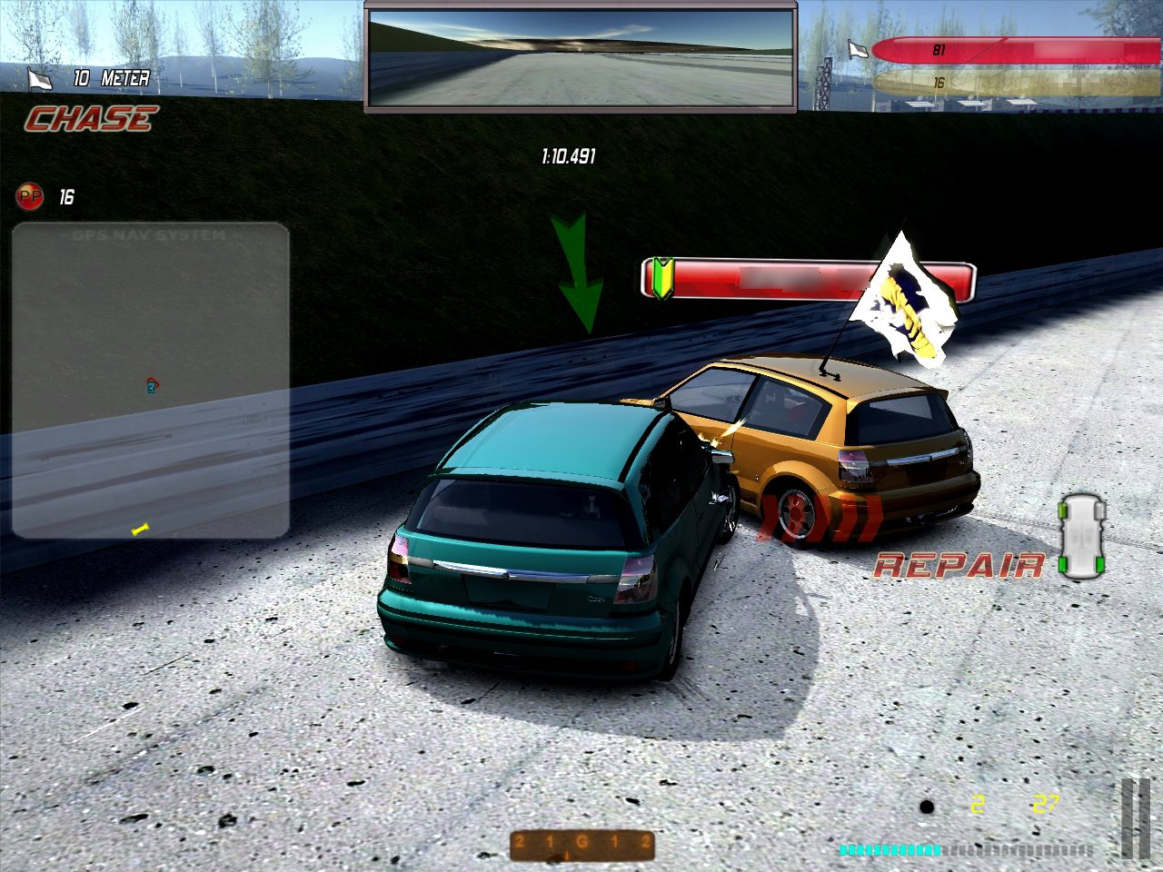 ・FUNモード 車をぶつけ,巨大な旗を奪い合うモード。旗を所持し続けることでポイントが増え,制限時間内で最も多くポイントを稼いだ人が勝者となる |