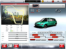 ボディ関連のエアロパーツを装着すると,外見が大きく変化する。だが,ショップ画面のステータスウィンドウで見る限り,愛車の「加速」「最高速度」「ハンドリング」「制動距離」の基本性能4項目には影響しない | |