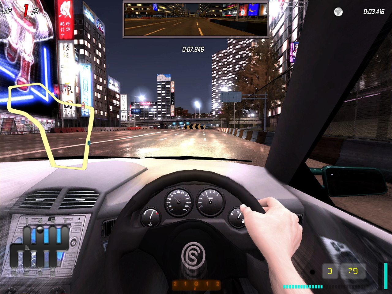 ・プラクティスモード 対戦に備え,まずはコースやクルマに習熟したいという人は,このモード。単独で走行練習が可能 |