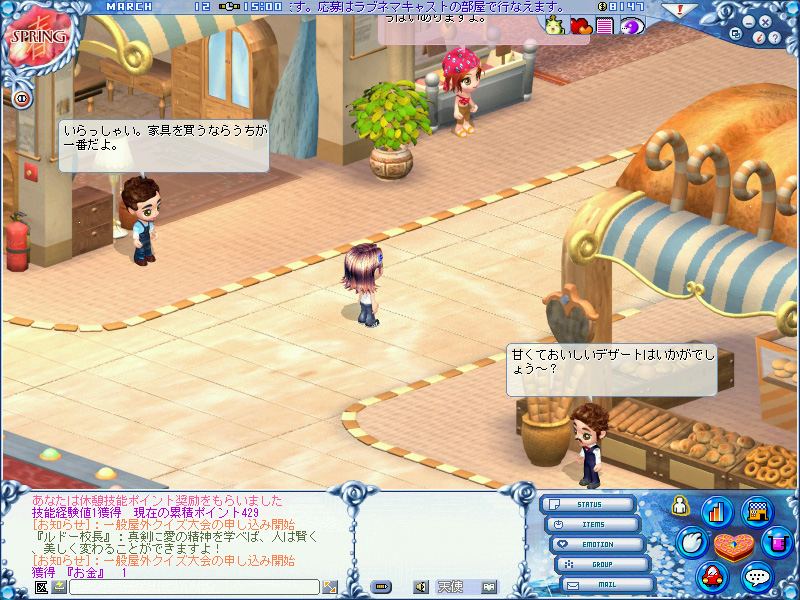 ターゲットが女性というだけあって,キャラクターや小物,雰囲気はすべて愛らしい。洋服や髪型を気分に合わせて変えてみたり,お気に入りの家具を揃えて部屋の模様替えもできる。さらに,洋服や家具はゲーム内で購入できるほか,アイテムの制作スキルを上げて自作することも可能。やりたいことは無限に広がる。