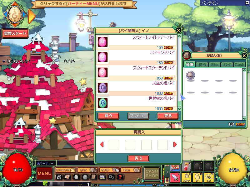 本作のタイトルにある“PI”(パイ)とは,ゲーム内において“卵”を意味し,文字どおり卵型のアイテム「パイ」が存在する。ほとんどのパイは“タウン”で販売されており,これを使うことでダンジョンや自分だけのハウスに行ける。インスタンスダンジョンは最大8人で同時にプレイ可能で,パイごとにミッションが異なり,ステージの最後にはボスが待ち受けている。