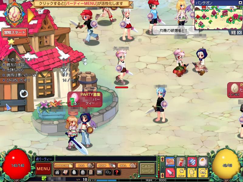 今回の第2次クローズドβテストでは短時間でサクサクっと遊べるパーティプレイが人気で,タウンのあちこちで8人編成のエンドレスなダンジョンツアーが開催されていた。