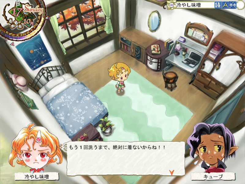 | 娘が人間界へとやって来る,直接の原因となった宿敵「ガトー」。娘の能力など,一定の条件が揃うと登場する。首尾よく倒せば新展開が待っているかもしれない |