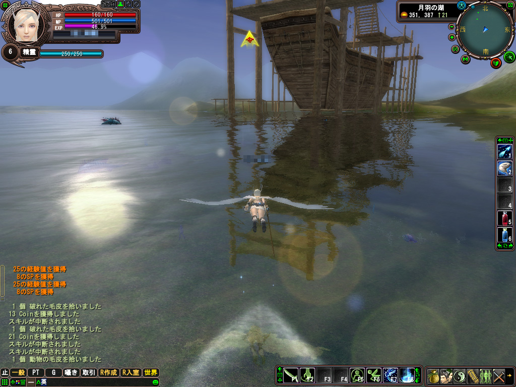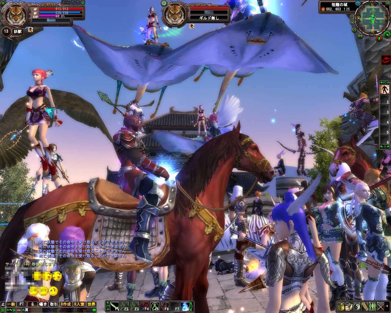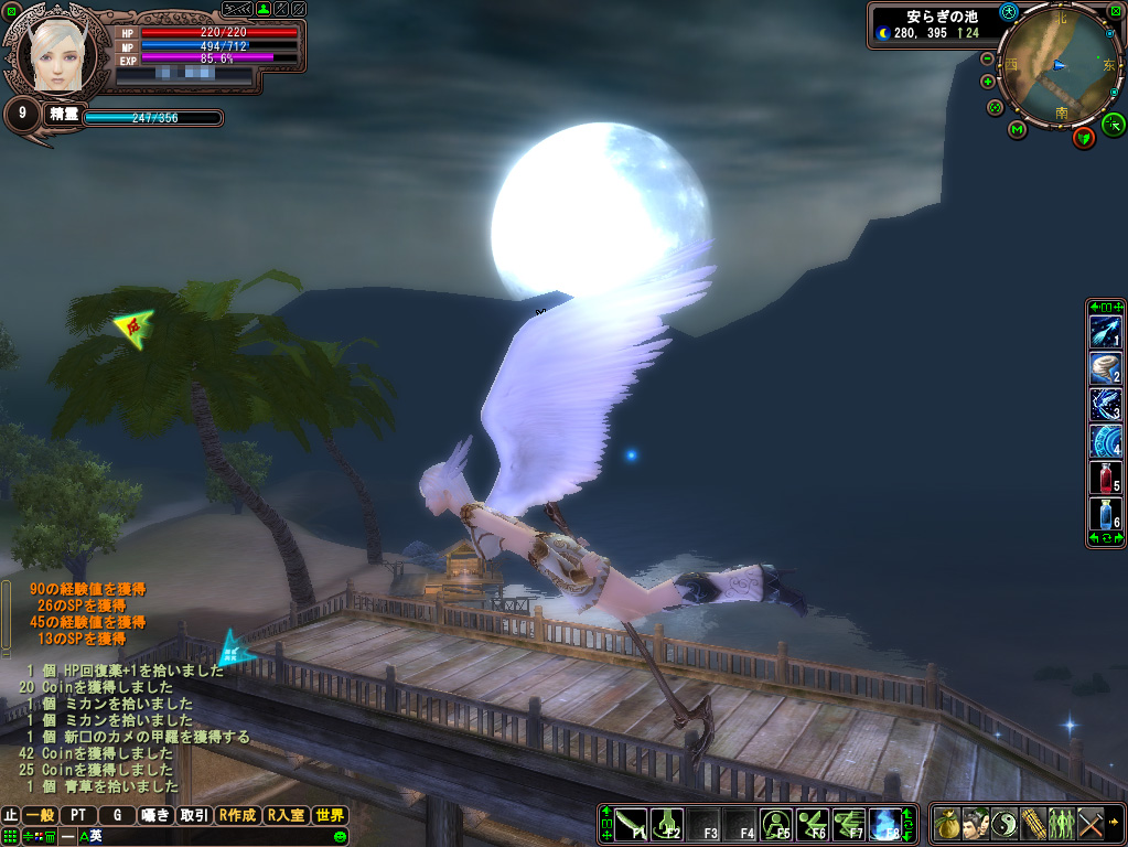 | 飛行によって段差や障害物による制約を受けにくくなるため,移動はかなりスムーズになる。またアクティブモンスターを回避できるので,高レベルプレイヤーを対象としたエリアも移動できる。ただし対空攻撃可能なモンスターには注意が必要だ | ||