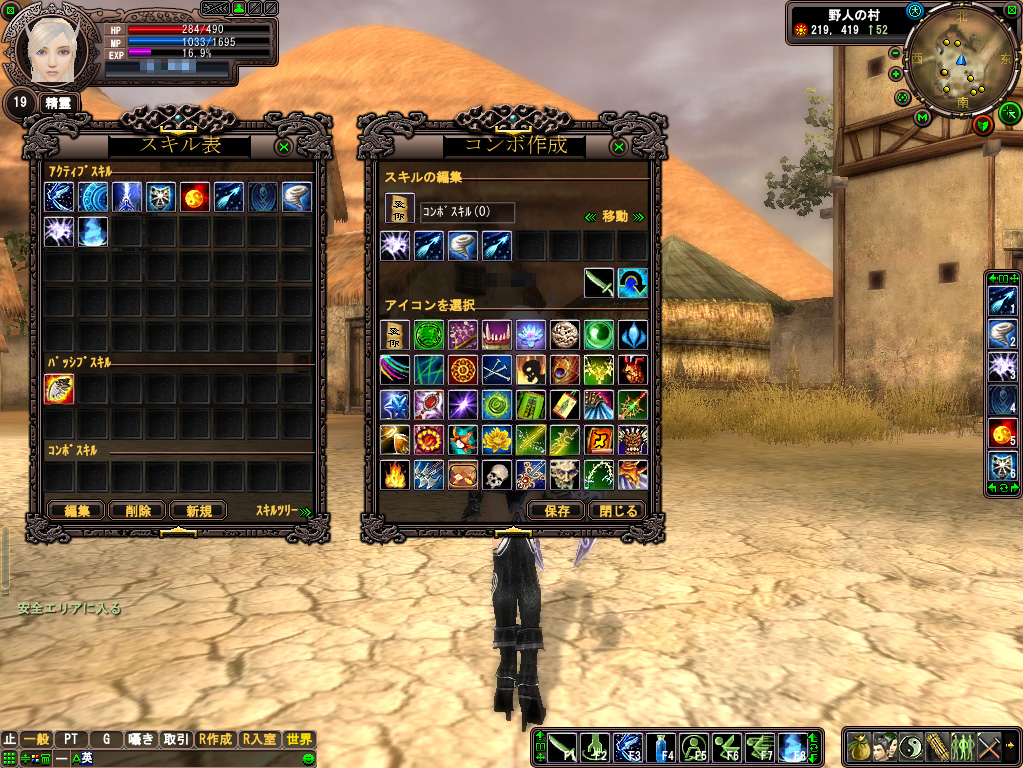 複数のスキルを連続で使う場合,「コンボスキル」として編集/作成し,1ボタンで発動させられる。一つのコンボには8種類のスキルを配置可能で,最大8パターンのコンボを登録できる。編集したコンボは,任意のアイコンを設定してショートカットに設定可能。