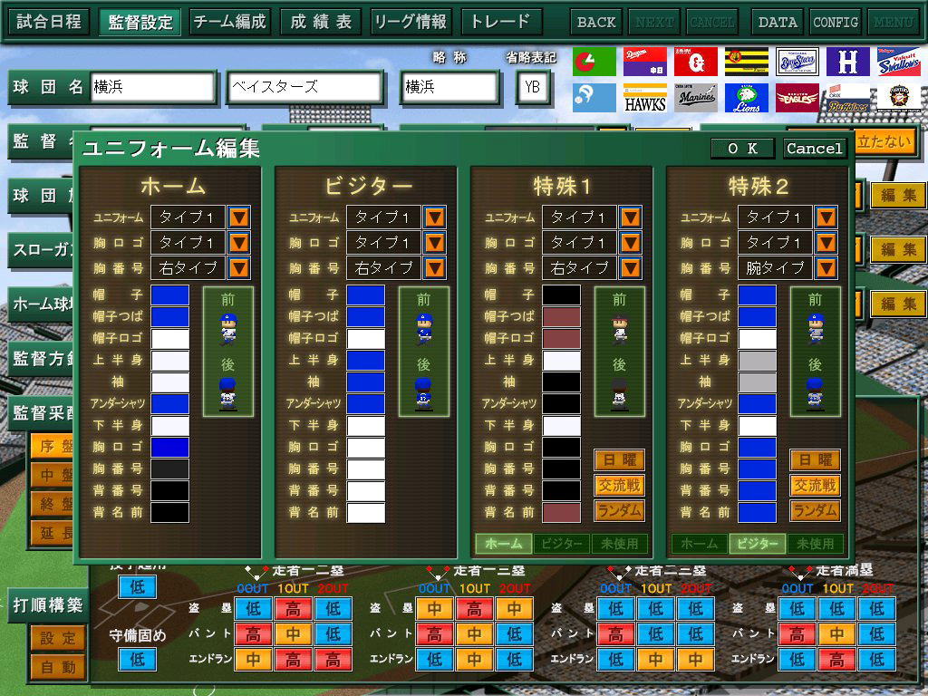 ●交流戦専用ユニフォームはエディット機能で