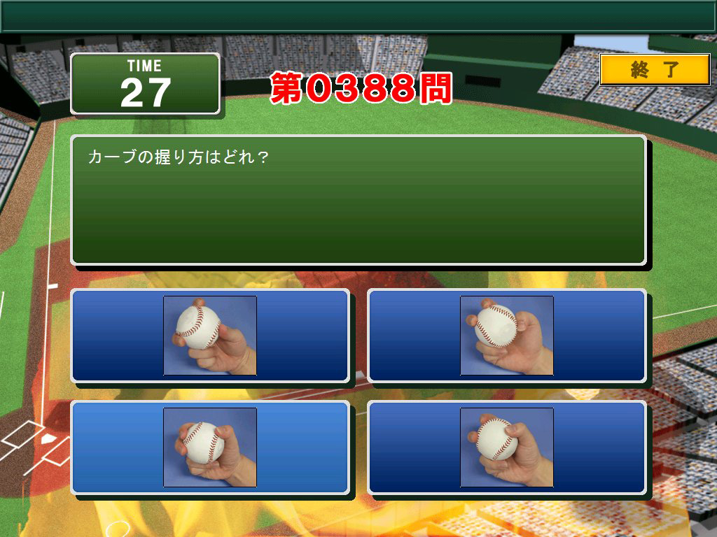 野球のルールや歴史などにまつわるクイズを楽しむ「戦プロクイズ」は,問題総数が前作の10倍,1000問にボリュームアップしている。画像を使った問題などが新しく導入され,バリエーションも増している点がうれしい。また今作では,試験に合格すると選手を強化できる「特殊能力」が獲得できる「戦プロ検定試験」や,1000問すべてが出題される過酷な「1000問ノックモード」も搭載されている。