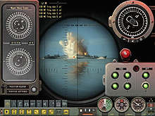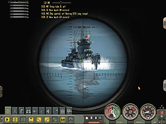| ソナーやレーダーをたよりに接近し,魚雷の射程範囲内まで来たら潜望鏡深度まで浮上。接近しすぎると猛烈な反撃を受けるので要注意 |